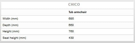 Chico Tub Chair is an update on the classic tub chair design, featuring a separate curved back and arms, with a comfortable sprung seat.