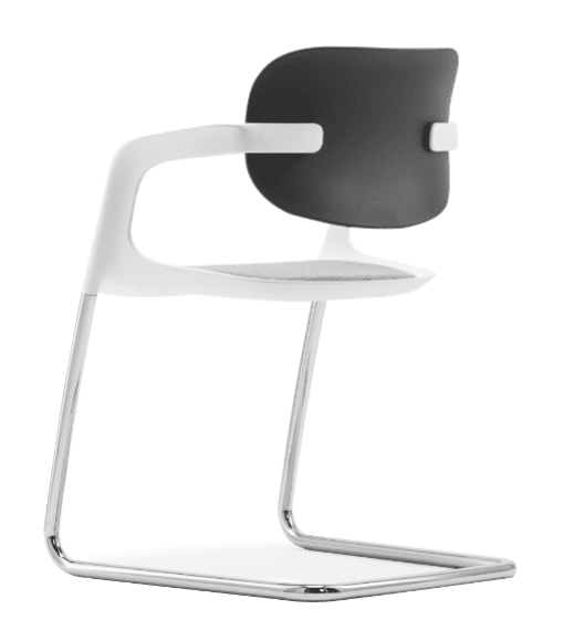 It’s design seeks to embrace the technological possibilities of structural injection moulded plastics to reinvent the steel cantilever chair, delivering a flexing organic form that provides ergonomic comfort and support to its user.